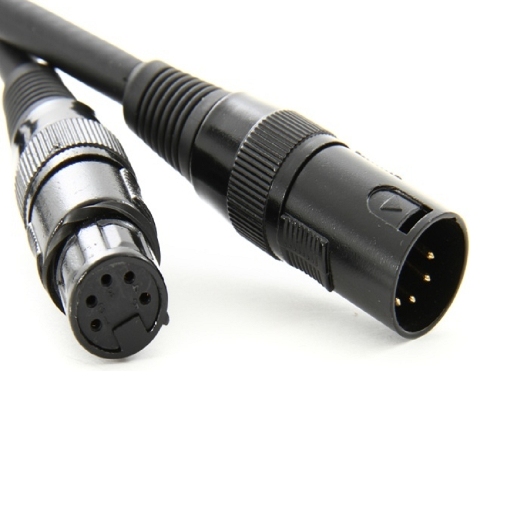 Standard 5-pin XLR cable used to deliver data to lighting fixtures and other DMX controlled devices.